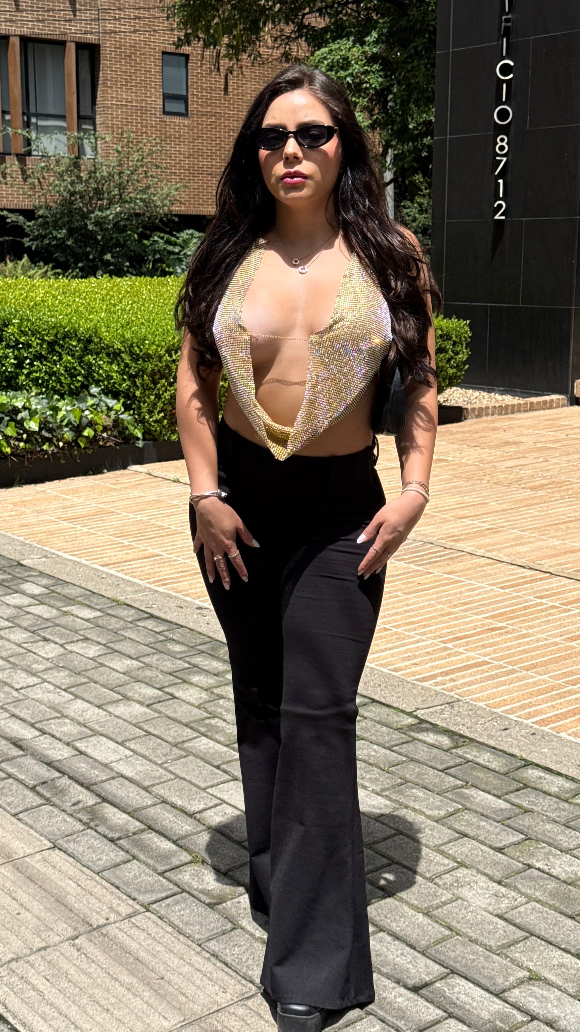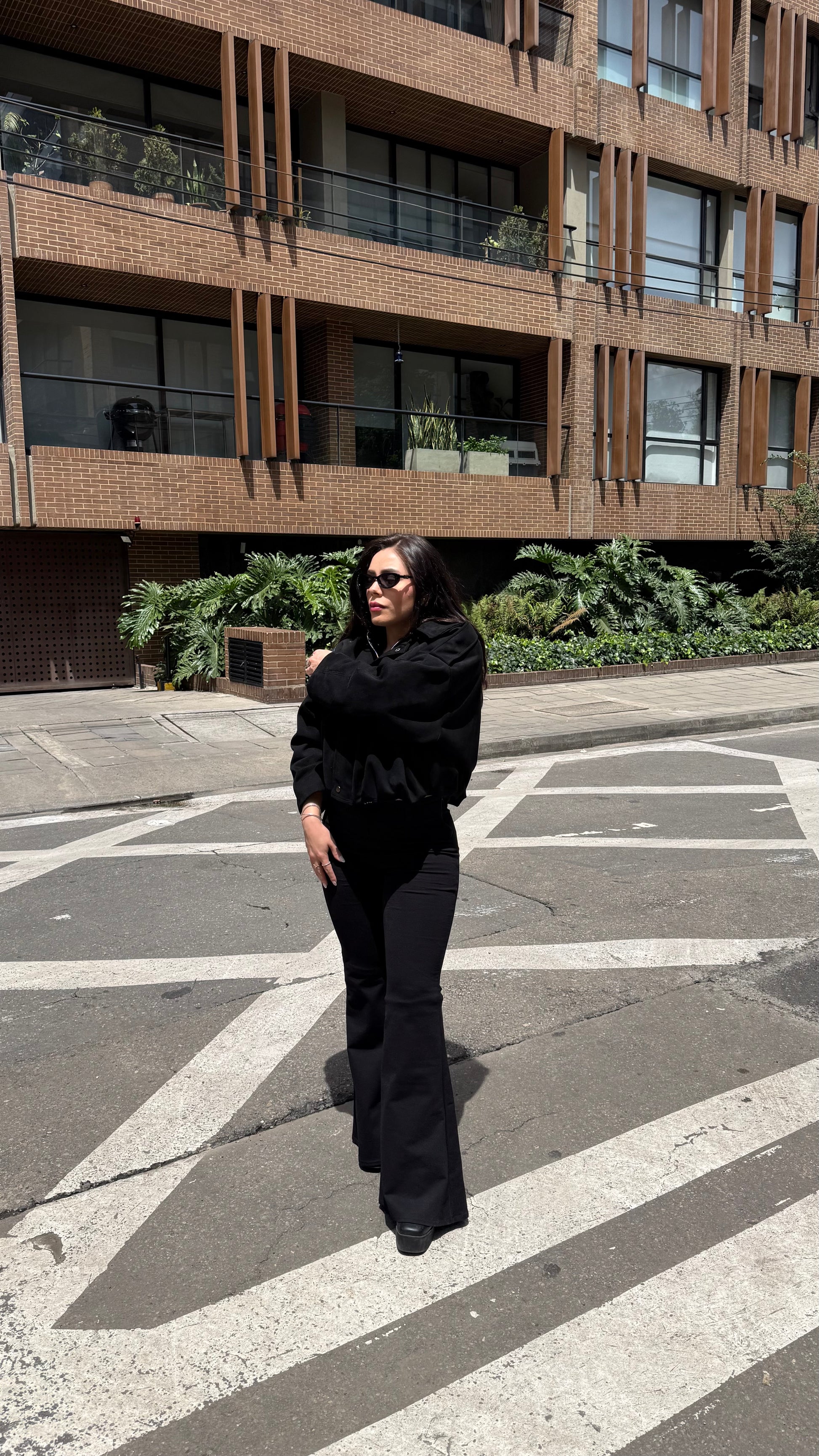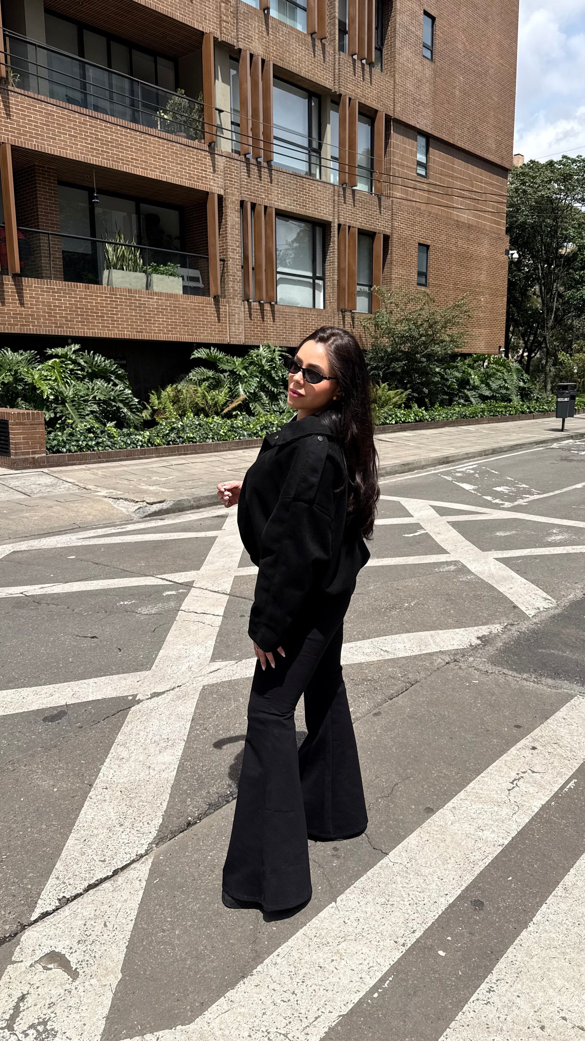 Pantalón campana confeccionado en tela gruesa y elástica que se ajusta perfectamente al cuerpo, realzando tu figura. Cuenta con un corte clásico de bota acampanada que proporciona movimiento y estilo. Incluye presillas para cinturón. Una prenda versátil que combina elegancia y practicidad para cualquier ocasión.