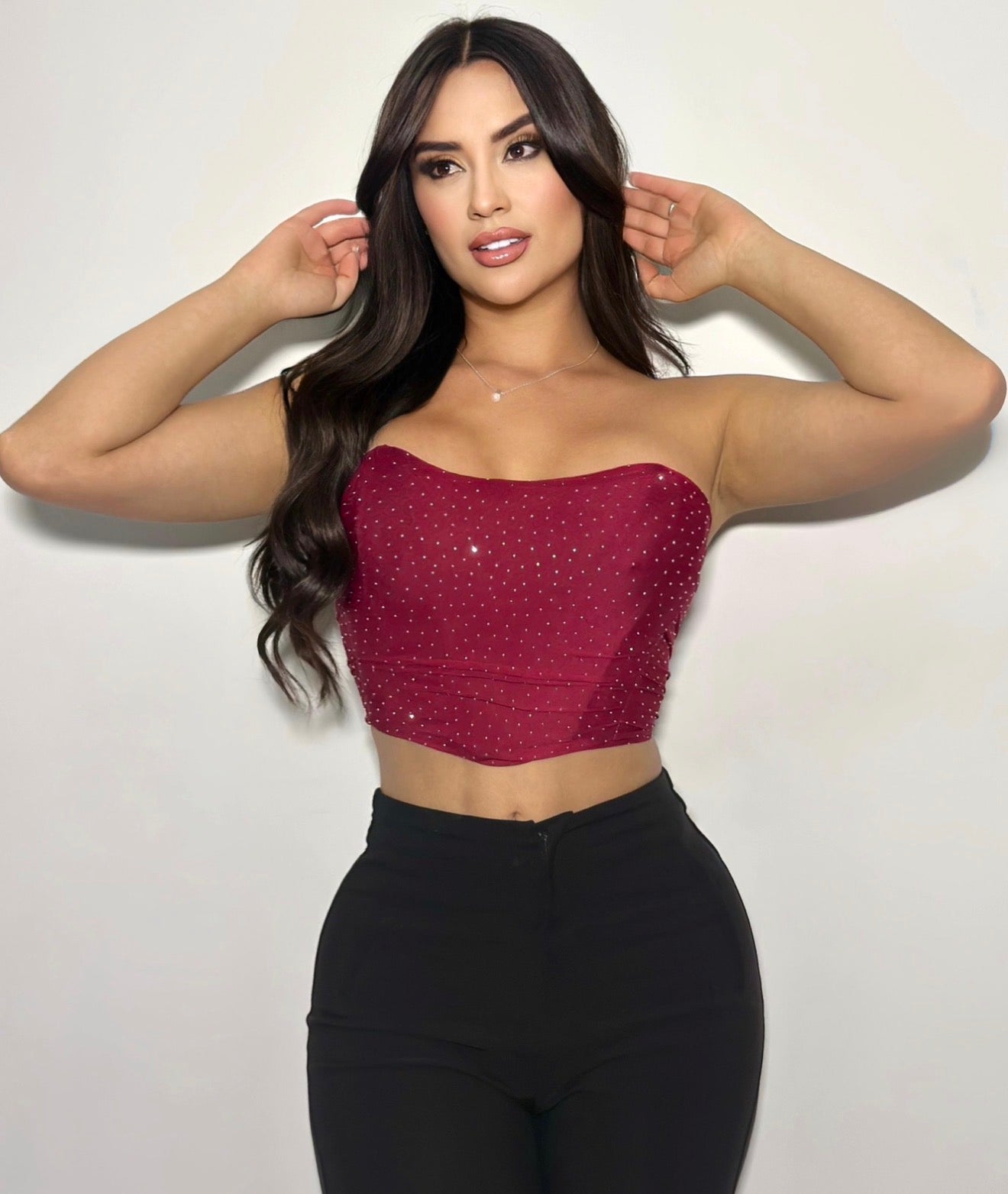 Minifalda y corset de brillos. Elaborados en mallatex.