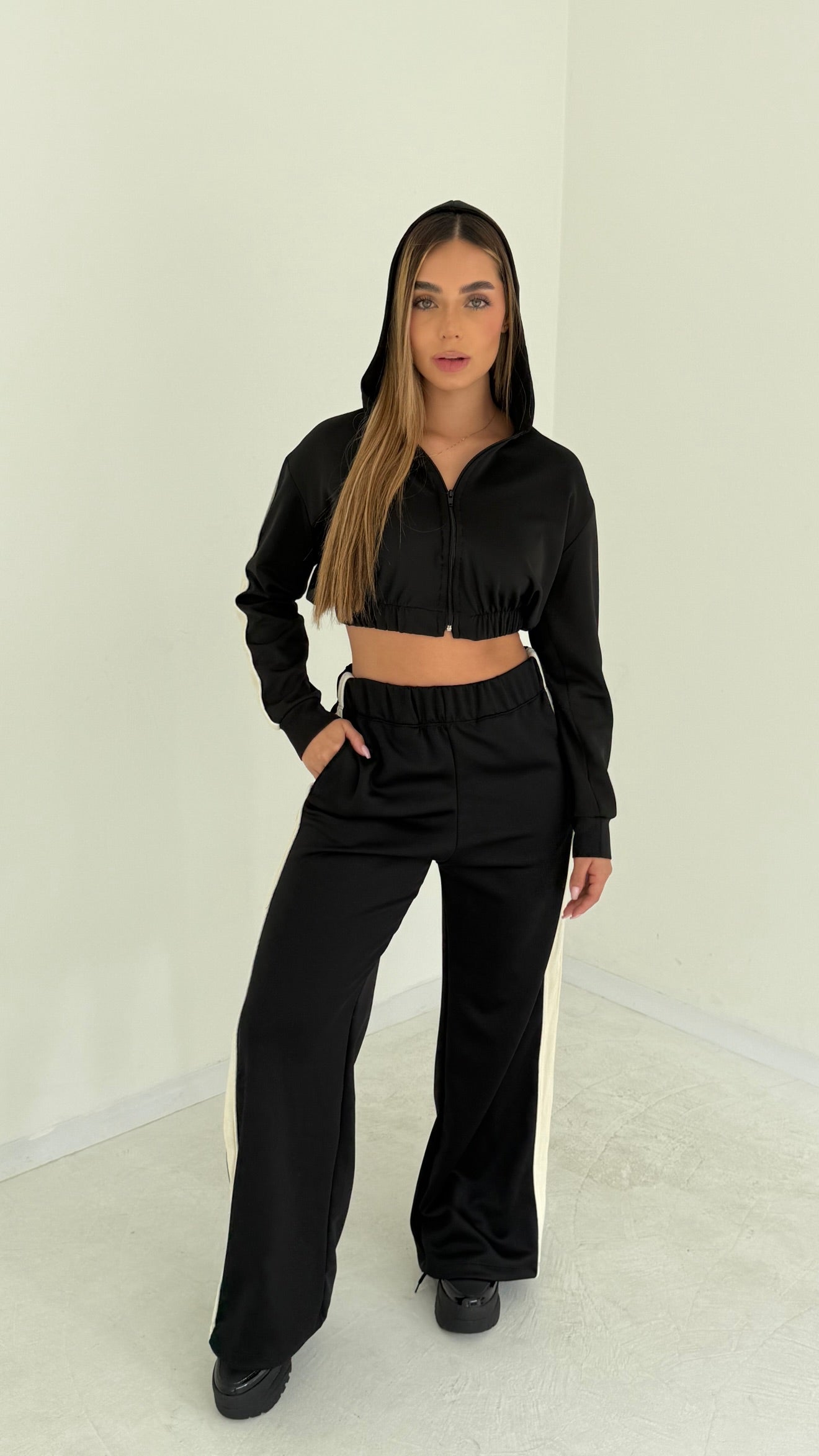 La sudadera perfecta para un día de deporte o para un look casual y cómodo. Con pantalón y chaqueta corta con capota, esta sudadera te mantendrá abrigado y a la moda al mismo tiempo. Su diseño exclusivo y elegante hará que te sientas sofisticado y único en cualquier ocasión. ¡Un must-have en tu guardarropa!